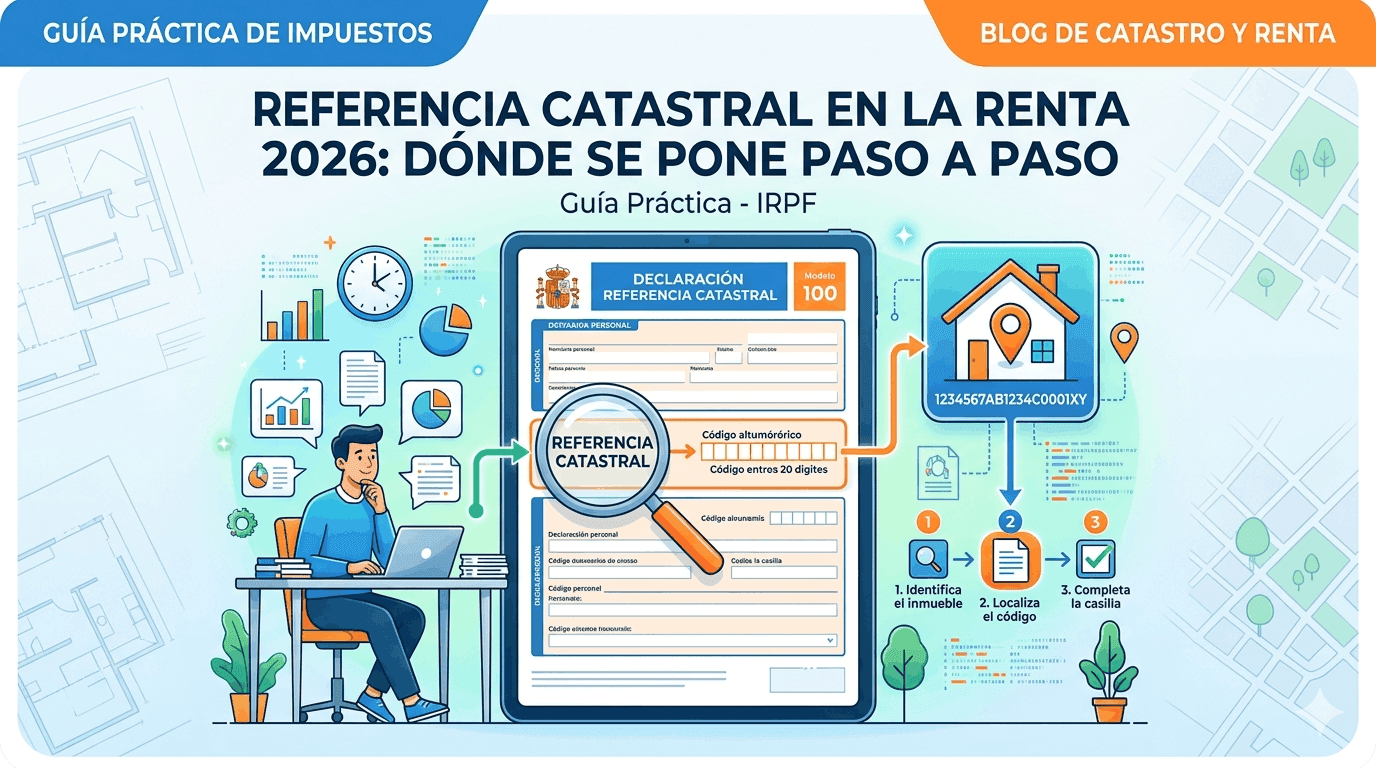 Resumen rápido: en la Renta 2026 Hacienda exige la referencia catastral de todos los inmuebles que seas titular (vivienda habitual, segundas residencias, alquileres, garajes y trasteros). Es un código de 20 caracteres que aparece en la ficha del Catastro, en el recibo del IBI y en las escrituras. Si no lo encuentras, puedes obtenerlo gratis por dirección en la Sede Electrónica del Catastro o desde el móvil con la app InfoCatastro. En este artículo te explicamos dónde ponerlo exactamente, qué errores son los que más generan liquidaciones paralelas y cómo actuar en casos especiales (herencias, obra nueva, inmuebles en copropiedad).